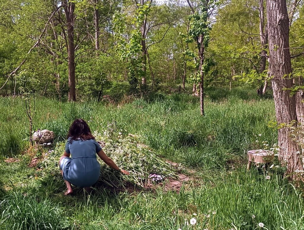 “Ze zeiden dat het goed was, dus wandelde ik vorige week 80 km door de regen. (Waarschijnlijk scheen de zon toen ik het bedacht had.) Hummend en neuriënd, hier en daar licht vloekend, sloeg ik de kilometers stuk.  Tijdens het wandelen had ik een paar rouwopdrachten. Sommige gingen me goed af, sommige gingen maar moeizaam.……